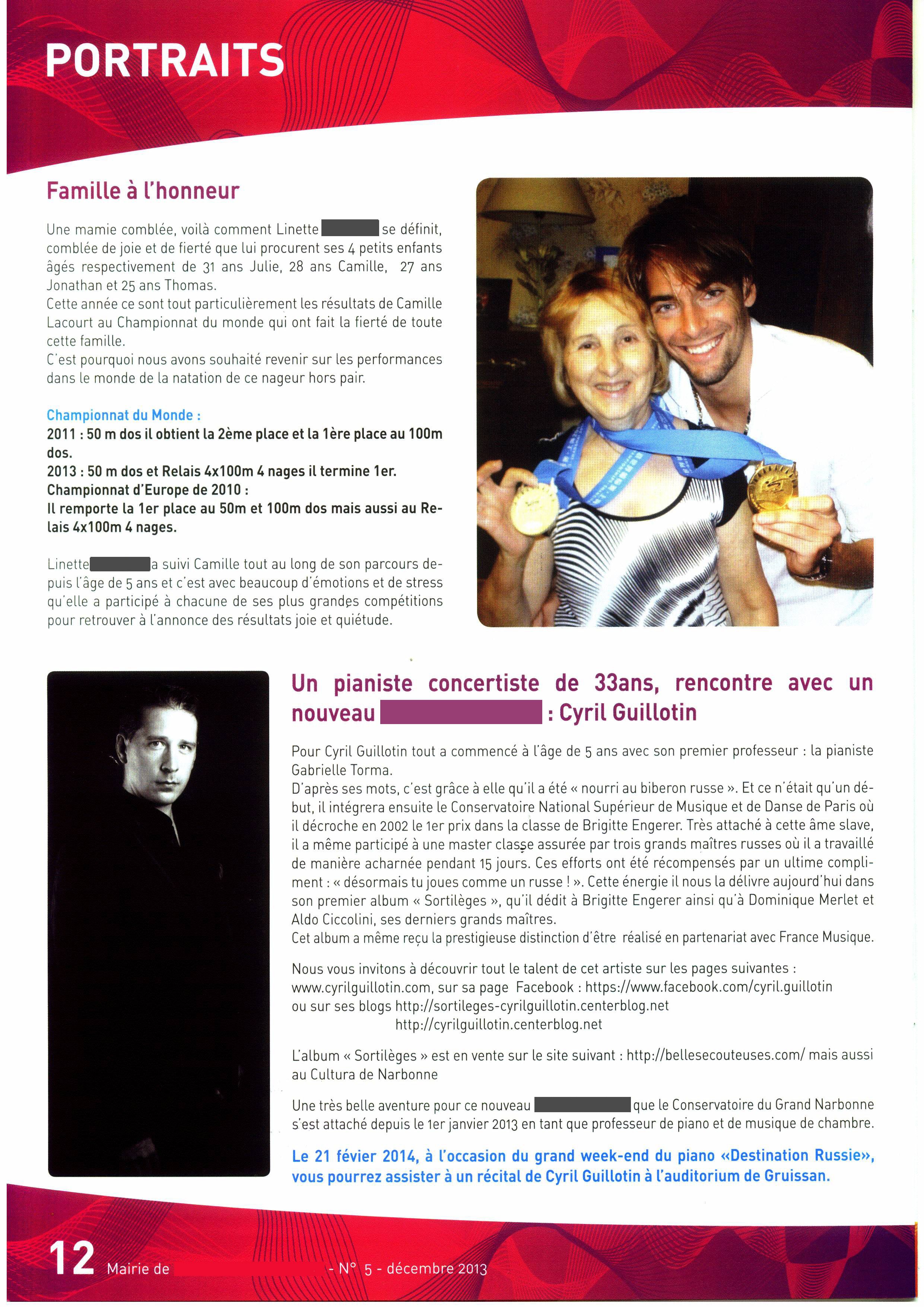 Un nouvel article sur le pianiste Cyril GUILLOTIN et son album "Sortilèges"... sur la même page que Camille LACOURT, le nageur double champion du Monde, s'il vous plait !!!